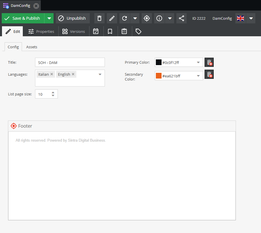 Il DamConfig è un oggetto da creare una tantum contenente delle configurazioni generali per tutta la piattaforma DAM.